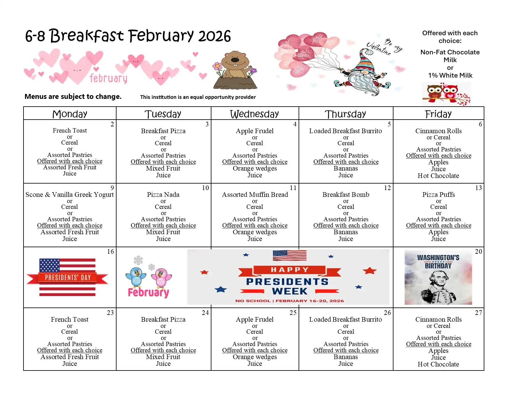 | Adult High School breakfast (including milk) | $4.75 per day |
