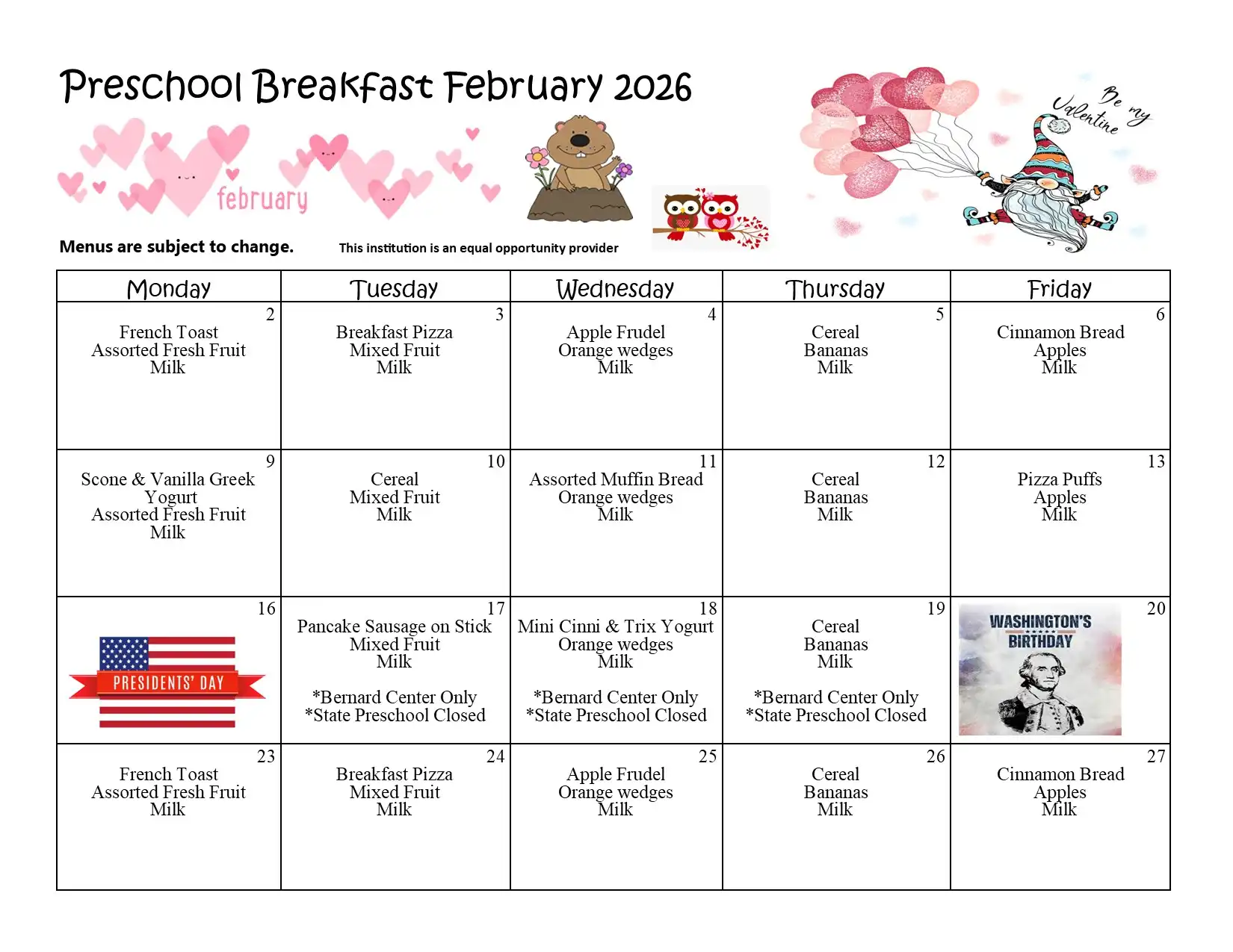 | Student SECOND breakfast | $3.00 per day |