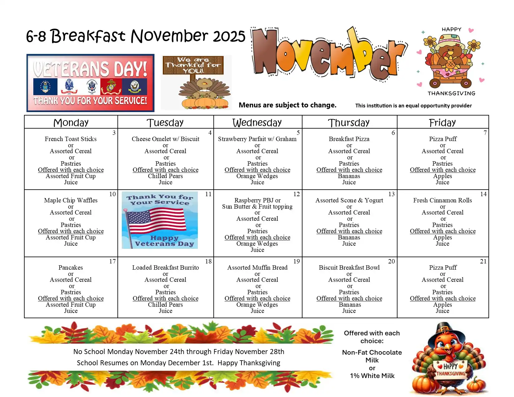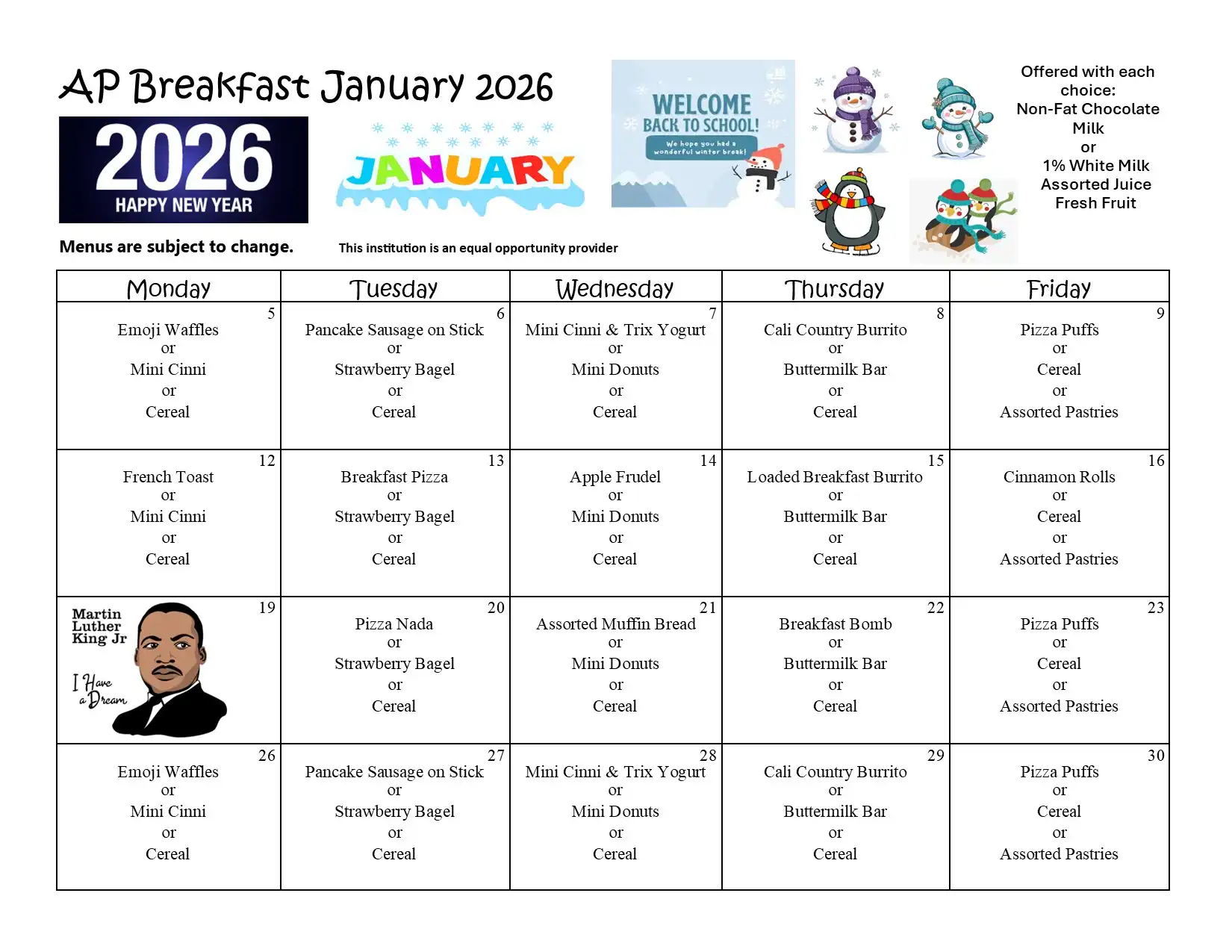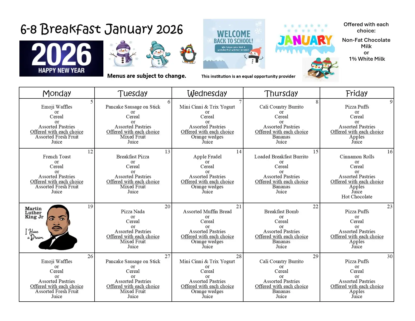 | High School student breakfast | $0.00 per day |