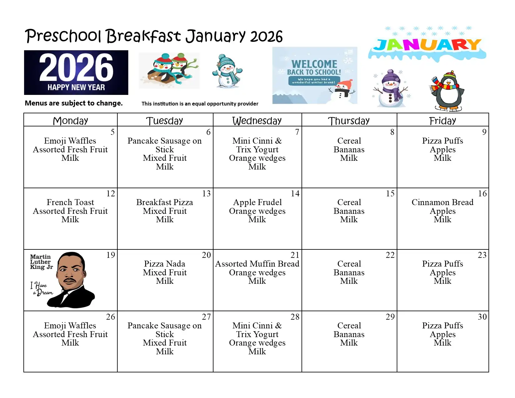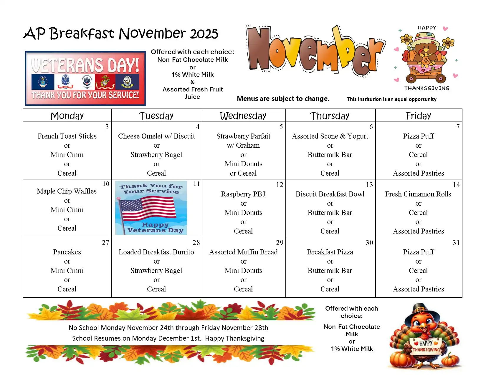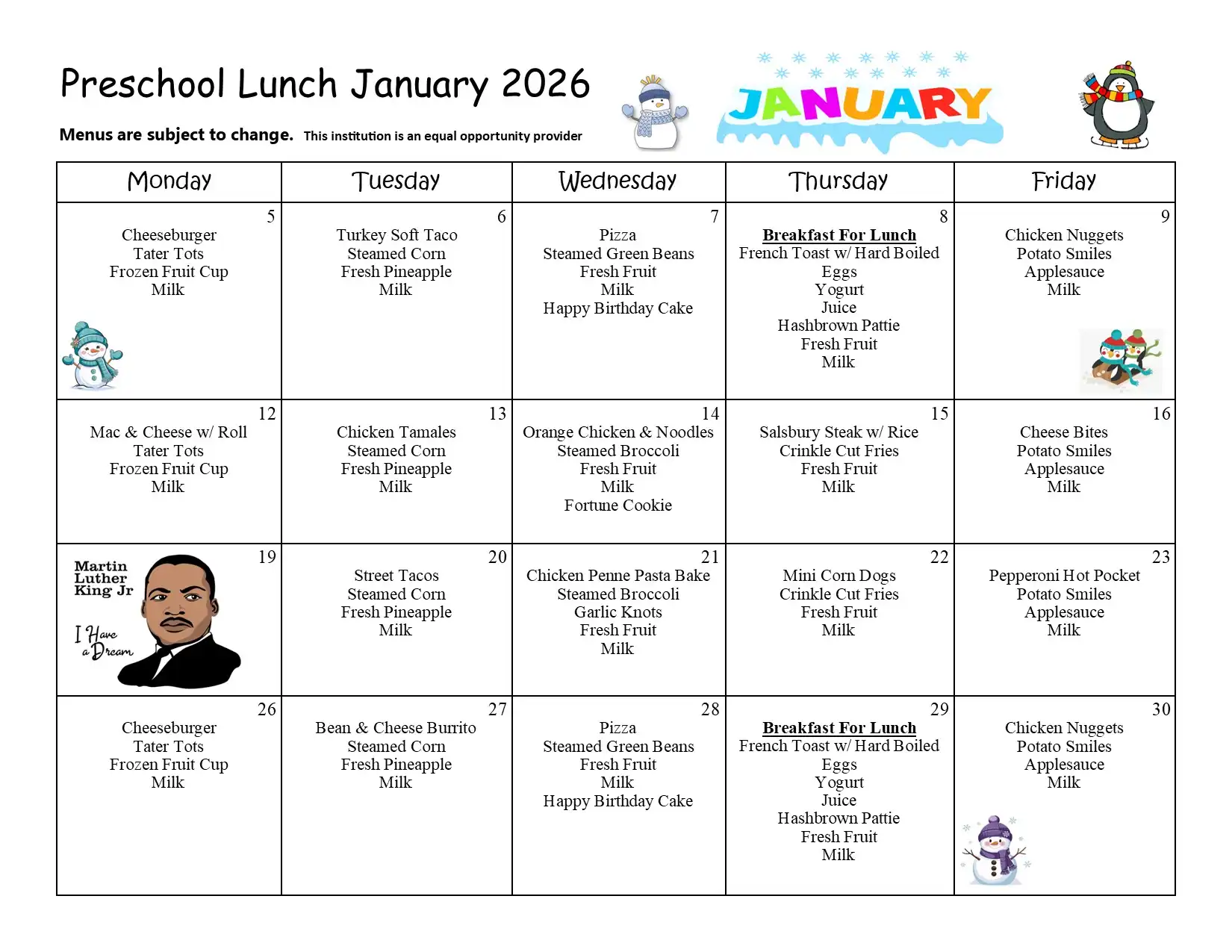 | High School student breakfast | $0.00 per day |