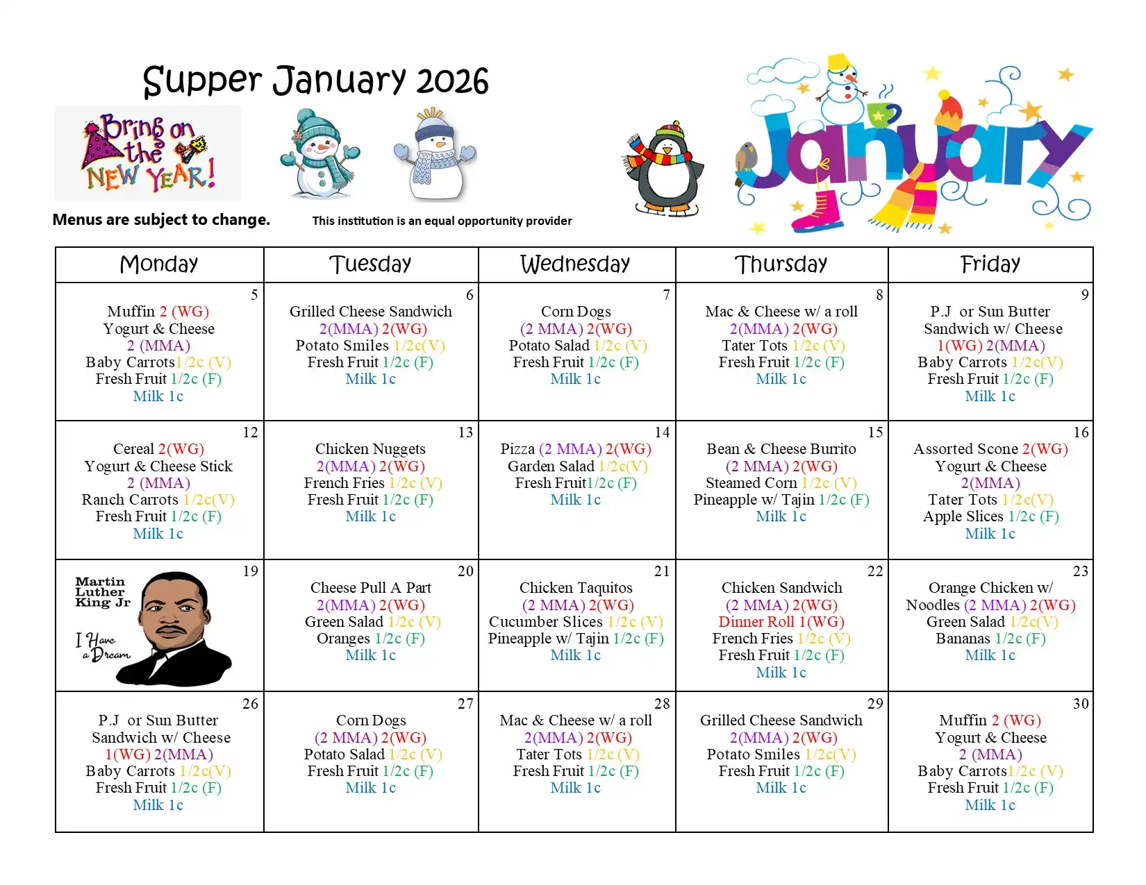 - Supper is a no cost meal available after school to all program enrolled students.