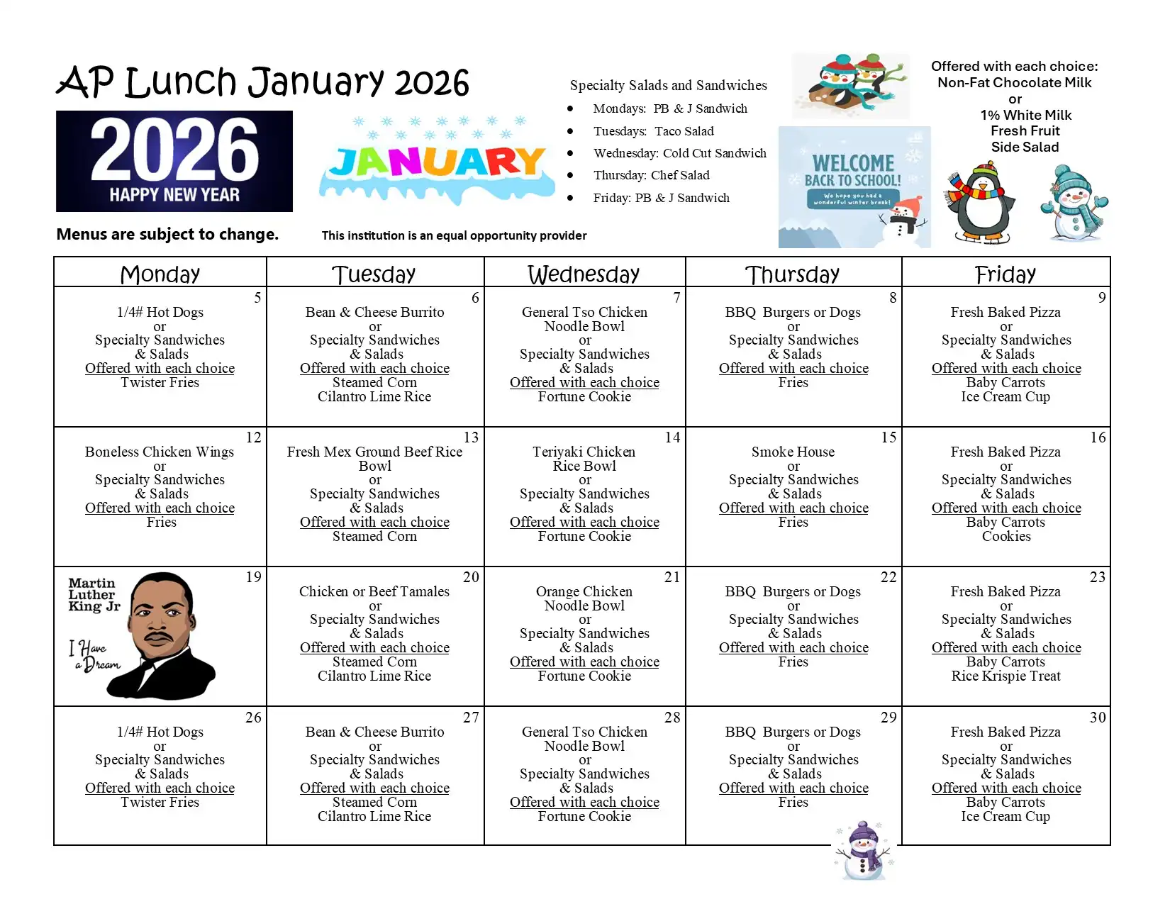 | Student SECOND lunch | $4.00 per day |