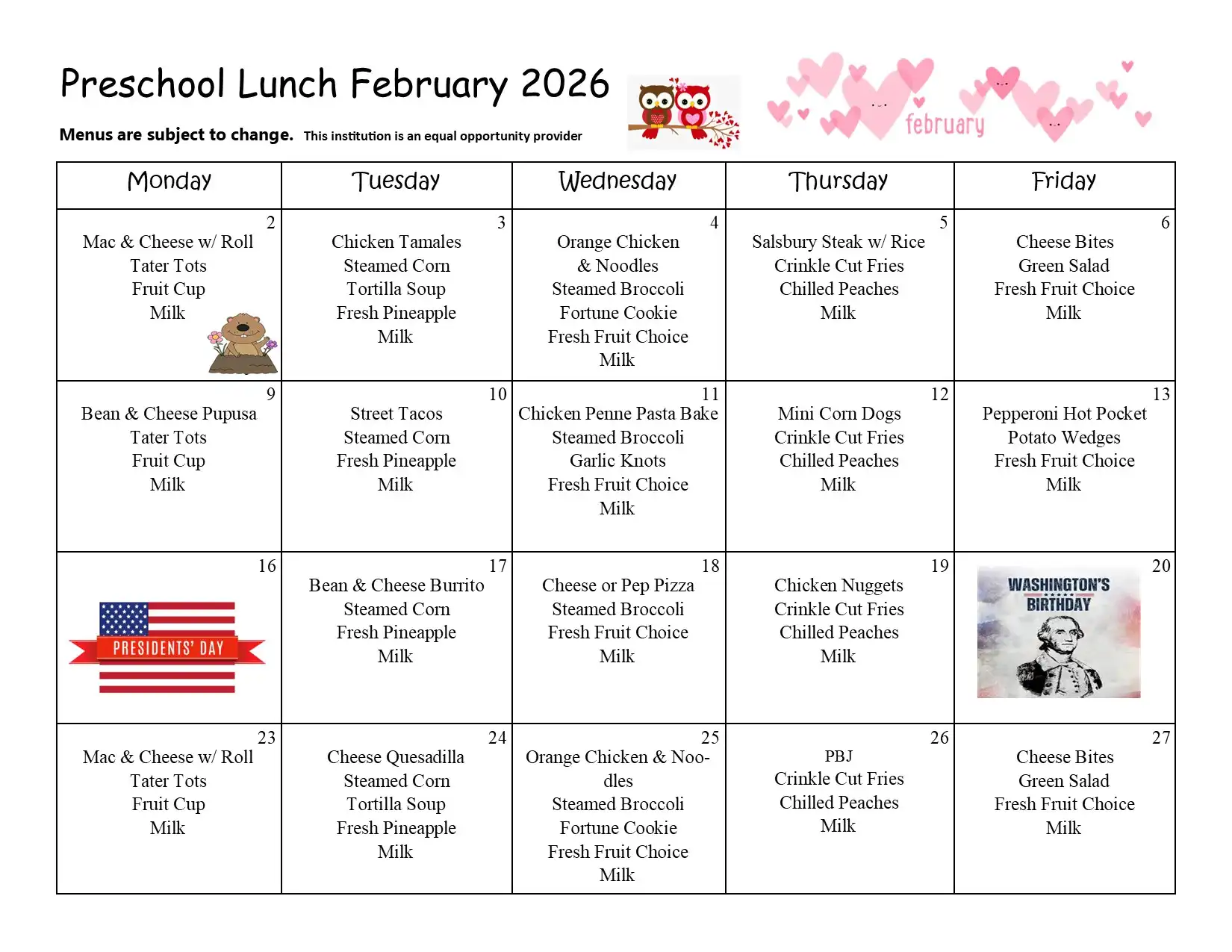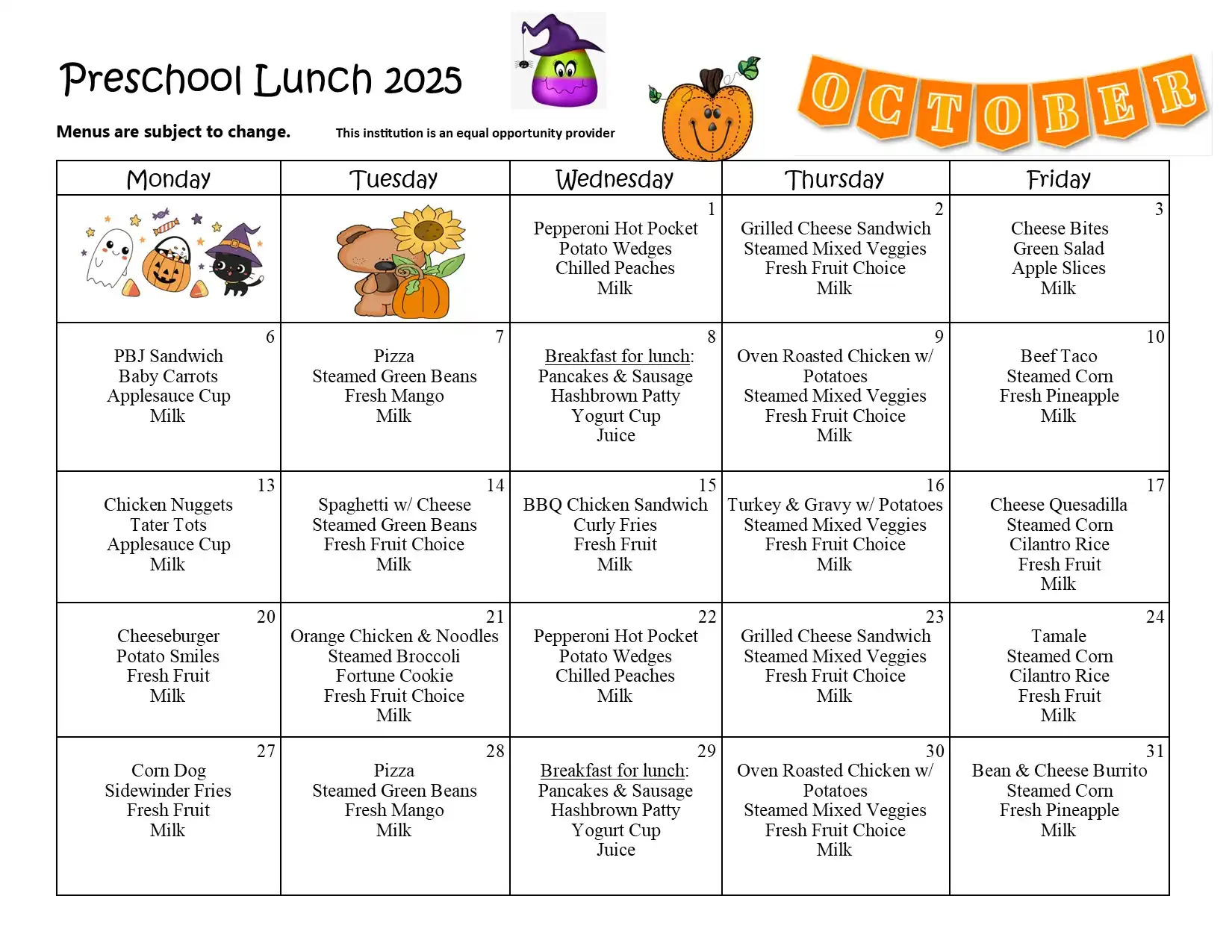 | Milk is included in the price of the meal, if milk is purchased separately it will cost | 60¢ per day |