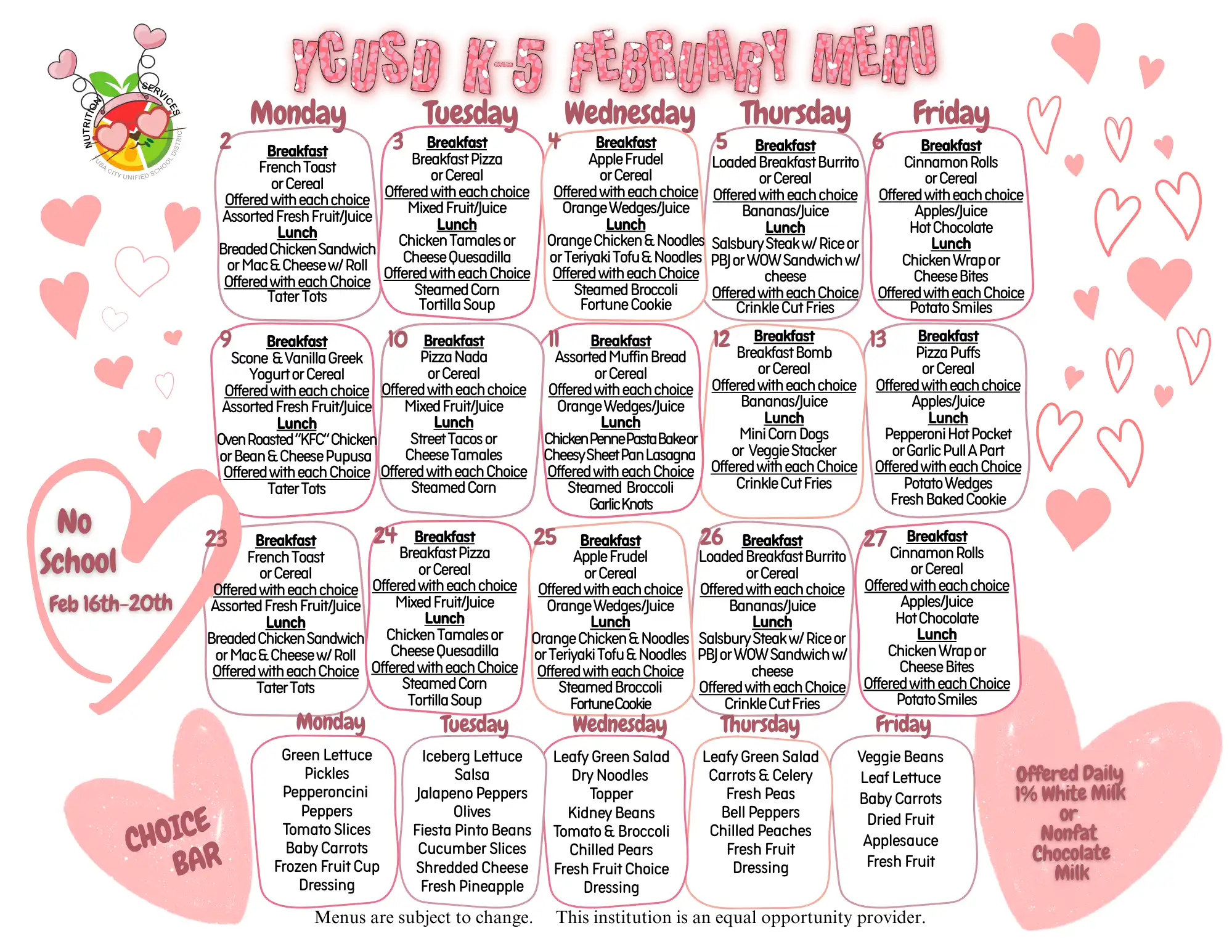 YCUSD Cafeteria Staff encourages students to select the appropriate food components. The CDE MyPlate graphic poster is displayed throughout our cafeterias as a visual guide to assist students in the correct selection of food components and ensure our division's compliance to CDE regulatory requirements.