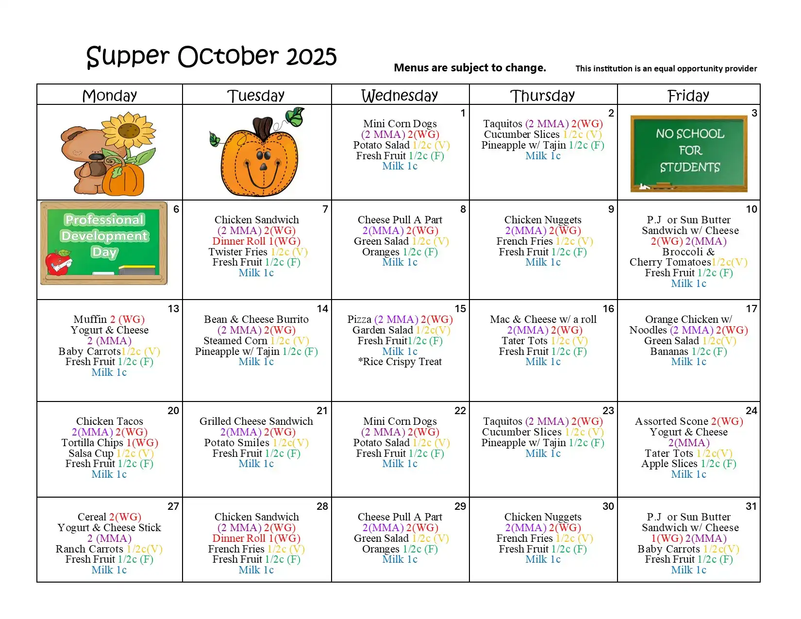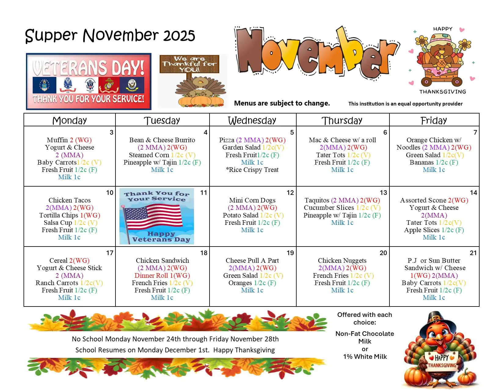 - Service times and service locations vary, check with your school to see when and where Supper is served.