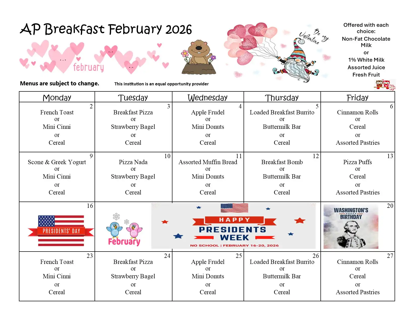 | Student SECOND breakfast | $3.00 per day |