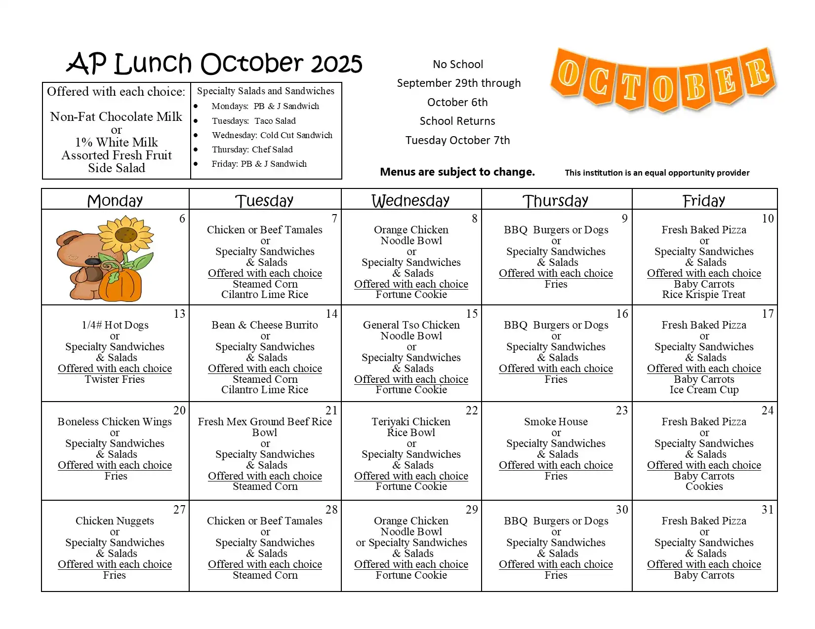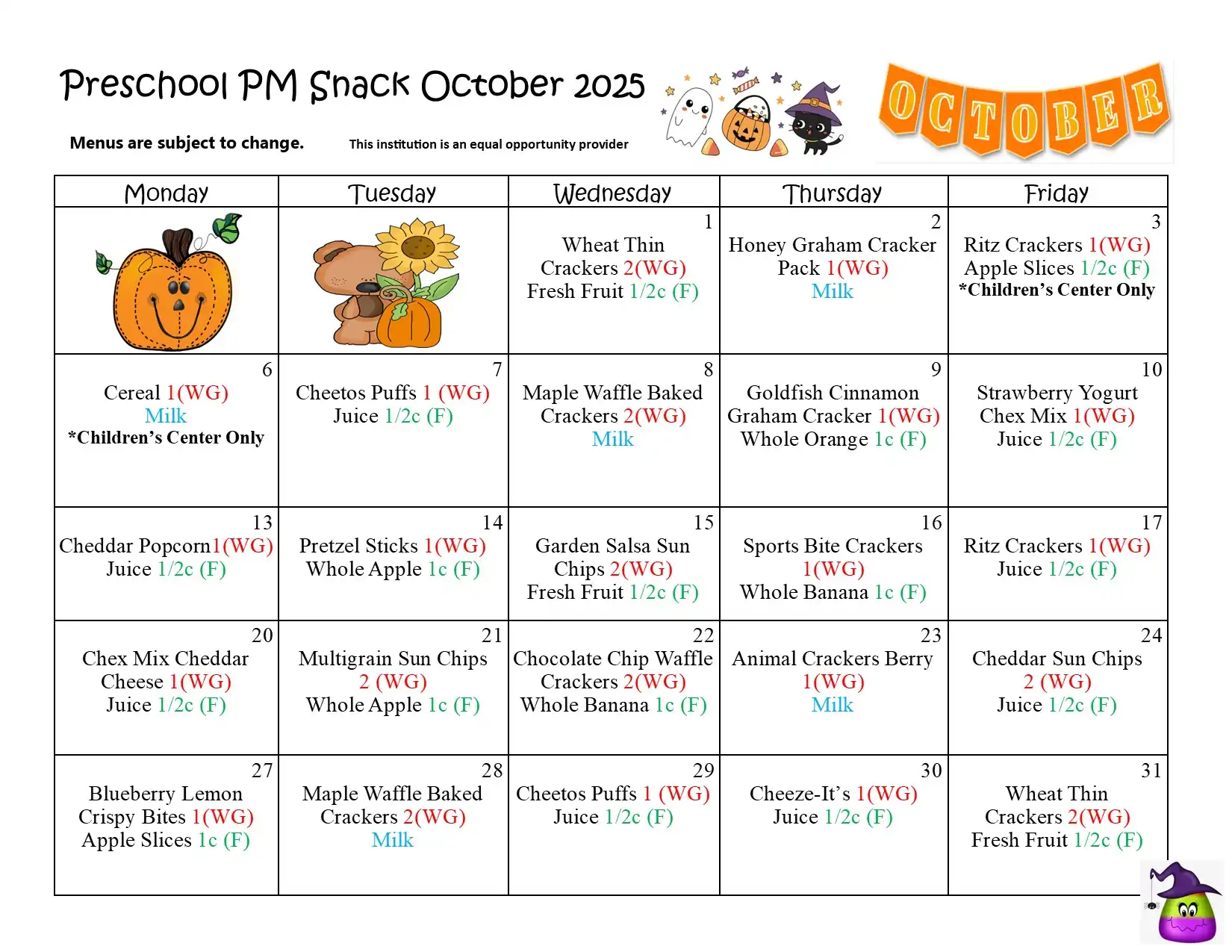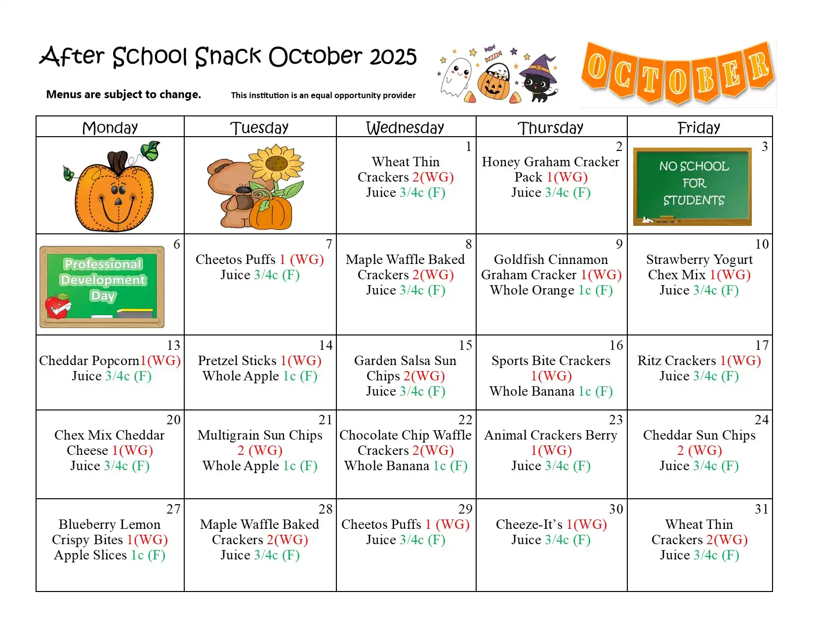 | Milk is included in the price of the meal, if milk is purchased separately it will cost | 60¢ per day |